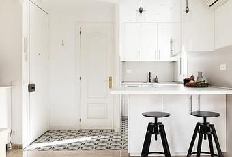 Es tan coqueto y acogedor, que nos ha ganado a la primera fotografía. Si ayer veíamos un pequeño piso sueco de 45 m² el de hoy, junto a la playa de la Barceloneta, solo tiene 32 m² y aún así, con todo lo necesario para pasar unos días una pequeña familia de dos o tres.