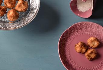 La receta que os traigo hoy es de clase aunque ya la conocía ya que mi abuela suele tener siempre coquitos cuando vamos a verla aunque como también tiene yemas nunca les he hecho mucho caso, me gusta el coco, pero tampoco me apasiona. Esta receta me tocó hacerla en clase a mi sola, aunque aquí os he puesto un cuarto de lo que realmente hice. En clase hice dos versiones, una con coco rallado y otra pasando el coco rallado por la thermomix para que quedara más fino. Yo en casa los hice con coco rallado sin más y así cuesta un poco más darles forma porque el coco no se hidrata tanto y se desmiga más al hacer bolitas, pero visualmente me gustan mucho más así, más rústicos y además es como siempre los ha hecho mi abuela. Ella como los hace a la vez que las yemas los hace sólo con claras y le quedan más blanquitos, yo los hice con huevo entero y la verdad es que tampoco vi mucha diferencia.
