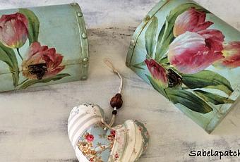 Hoy les traigo un corazón crazy, en tonos azules y unas cajitas tipo cofre que he decorado usando decoupage