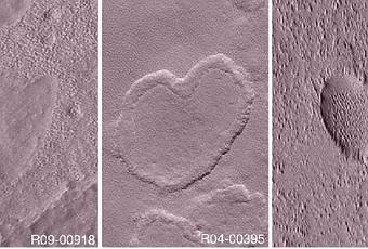 La nave “Mars Gobal Surveyor” ha captado cráteres en el planeta Marte que nos recuerdan mucho al típico corazón tan usado en la fecha del día de los enamorados, de la amistad o del amor, como estamos en estas fechas que mejor forma que celebrarlo que con estas bellas imágenes:
