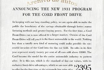 Vale mencionar que los modelos de la marca Cord eran fabricados por la empresa Auburn Automobile Company, que estaba ubicada en la ciudad de Auburn del estado de Indiana. Tal como consta en la publicidad, debajo del texto publicitario.
