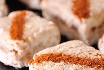 Una vez cortados los trocitos, los rebozamos en abundante azúcar glacé y les ponemos el adorno de canela molida.