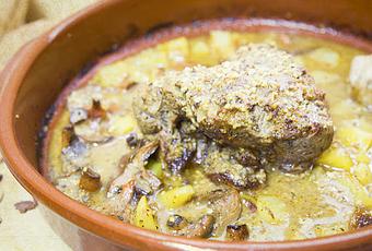 - Volvemos a meter al horno y cuando transcurre 15 minutos más del asado incorporamos los níscalos lavados y cortados en trozos.