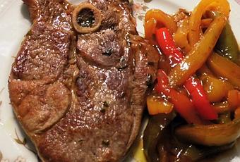 En el mismo aceite que hemos salteado los pimientos, hacemos la carne, que coja buen color. Si es necesario poner un poco mas de aceite. Cuando la carne este hecha, agregamos los pimientos nuevamente.
