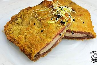 Es una mezcla entrey asturiano deliciosa. Tradicionalmente se realiza con carne de ternera pero actualmente podemos encontrarlo de pechugas de pollo o de otros tipos de carne. Su relleno tradicional es de jamón cocido y queso, pero ya sabemos que las recetas van evolucionando y se rellenan de todo tipo de ingredientes.
