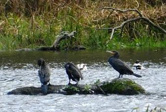 Cormorán grande Phalacrocorax carboAl igual que en otros puntos de Asturias, la población invernante de cormorán grande en el río Narcea fue aumentando en consonancia con el aumento de efectivos en sus áreas de cría europeas. Por culpa de este aumento, el cormorán grande ha sido declarado culpable del coincidente en el tiempo (aunque coincidencia no quiere decir causalidad) declive del salmón y la trucha en nuestros ríos, y por ello han sido condenados a morir a tiros al menos 240 ejemplares, 50 de ellos en el Narcea.