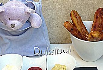 El corn dog es una especie de perrito caliente compuesto de una salchicha recubierta con una masa de pan de maíz que se fríe en aceite caliente. Se suelen servir clavados en palos de madera y se venden en puestos o carritos callejeros y en restaurantes de comida rápida de Estados Unidos. Nuevamente, he disfrutado cocinando con mis niños, que me han ayudado a preparar estos sabrosos corn dogs. También han querido colaborar preparando la foto del resultado, así, yo he presentado la comida y ellos han elegido el decorado! Para colgar sus juguetes en la cuerda han utilizado mis pinzas PINPERS. Son pinzas para tender, fabricadas en Alicante, que no dejan marca ni señal en las prendas gracias a su gancho adicional; esto supone un ahorro energético a largo plazo por el menor uso de la plancha para eliminar la arruga que deja el tendido con una pinza tradicional. Además, permiten una máxima sujeción al tendedero y se aprovecha mejor el espacio en este ya que con una sola pinza se pueden tender varias prendas a la vez. Cuentan con un muelle de 8 vueltas galvanizado anti roturas y su material posee un tratamiento especial con FILTRO UVA que le aporta mayor resistencia al sol. Podéis adquirirlas, en cajas de 10 unidades, en algunos comercios y en su tienda on-line, además dan la opción de personalizar los paquetes para hacer un curioso regalo!Para preparar esta receta se necesita:INGREDIENTES (12 uds.):- 12 salchichas de frankfurt (yo utilicé tipo Viena)- 75 gr. de harina de maíz- 75 gr. de harina de trigo- 125 ml. de leche- 1 huevo- 1 cucharadita de levadura- 1 cucharada de azúcar- Media cucharadita de sal- Aceite para freírPREPARACIÓN:- Batir todos los ingredientes (excepto las salchichas y el aceite) con la batidora.- Secar las salchichas con papel de cocina para retirar la película gelatinosa que llevan y, así, se adhiera bien la masa.- Insertar una brocheta corta a cada salchicha.- Introducir cada salchicha en el vaso de la batidora (aquí se hace muy bien al ser alto, así se impregna la salchicha con la masa por toda su superficie).- Freír en aceite caliente.- Colocar sobre papel de cocina para que se absorba el exceso de aceite.- Servir acompañado de las salsas que más nos gusten, en mi caso, mayonesa, ketchup y mostaza.Me hubiese gustado poner una foto del interior de la salchicha pero a mi alrededor ya estaban dando buena cuenta de ellas mientras preparábamos la foto así que no ha sido posible!Feliz día y a disfrutar!!