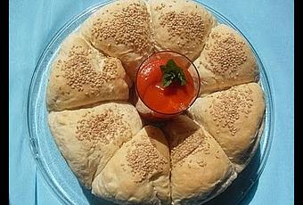 *PAN DE HAMBURGUESA: SEGUIR LAS INSTRUCCIONES DE LA MASA, Y FORMAR UNA CORONA HACIENDO BOLLITOS CON UN MOLDE DESMONTABLE, DEJAR LEVAR, HORNO, PRECALENTADO A 180º, UNOS 15 MINUTOS. SACAR Y DEJAR ENFRIAR, CORTAR POR LA MITAD. RESERVAR.