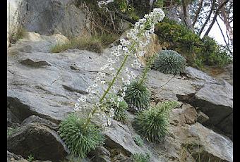 La corona de rey (saxifaga longifolia) es una planta que está formada por una roseta de hojas con un tallo que es casi inexistente. Las hojas son carnosas y gruesas y su color es verde claro.Sus flores crecen en gran cantidad y están repartidas por todo el tallo. Son de color blanco y están formadas por 5 pétalos. Florece en primavera hasta bien entrado el verano. Solamente florecen las plantas que están más maduras.