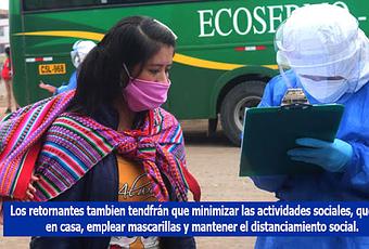 Más de 80 pobladores de la provincia de Oyón pasaron por la prueba rápida, para descartar el Covid-19 y evitar posibles contagios, en su comunidad.Antes de retornar a sus zonas de origen, el personal de la Red de Salud Chilca – Mala realizó la evaluación médica y tamizaje de los niños, jóvenes y adultos. La actividad tuvo lugar en el distrito de Puente Piedra, Lima Metropolitana.La Dirección Regional de Salud monitoreó el cumplimiento de los protocolos sanitarios y de seguridad establecidos por el Gobierno Nacional, para que no esté en riesgo la salud de los viajeros, así como la de terceros.Tras informarse que este grupo poblacional una vez instalados en su residencia habitual, tendrán que cumplir por 14 días con un confinamiento controlado y seguro, además de contar con acceso a alimentos durante dos semanas, el Gobierno Regional de Lima (GRL), comunicó que los retornantes, también, han recibido información sobre hábitos saludables para prevenir la infección del virus, debiendo lavarse las manos frecuentemente, desinfectar los objetos que usa con frecuencia, ventilar bien los ambientes de la casa, no llevarse las manos a la cara. Asimismo minimizar las actividades sociales, quedarse en casa, emplear mascarillas y mantener el distanciamiento social.