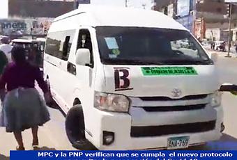 El nuevo protocolo de transporte de pasajeros del Ministerio de Transportes y Comunicaciones (MTC) establece una serie de lineamientos que los conductores, cobradores y usuarios deben cumplir para evitar la propagación del covid-19. Por ello, la Municipalidad Provincial de Cañete (MPC) a través de la gerencia de Transporte y Seguridad Vial en coordinación con la Policía Nacional, están realizando operativos inopinados en puntos estratégicos del distrito de San Vicente, para asegurar el cumplimiento del citado protocolo.La gerente de Transporte de la comuna local, que están supervisando el cumplimiento de las nuevas reglas en el transporte urbano “para evitar que el transporte público se convierta en un foco infeccioso”.