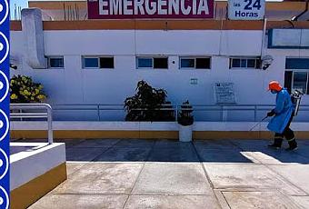 En Huaral desinfectan área de emergencia y ambientes del hospital “San Juan Bautista”.