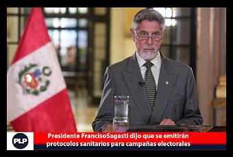 aprobación de los protocolos sanitarios para la campaña electoral, con el fin de evitar los contagios de coronavirus, es otra de las acciones que en los próximos días ejecutara el Gobierno – anunció el presidente de la República, Francisco Sagasti.