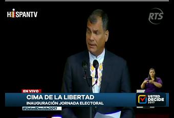 Estas afirmaciones de Correa han tenido lugar durante la apertura de las elecciones generales de Ecuador, a las que un total de 12 millones 816 mil 698 electores están convocados. Los candidatos con mayor opción para ganar los comicios presidenciales de Ecuador son el aspirante del movimiento Alianza País, Lenín Moreno, y el candidato opositor del movimiento Creando Oportunidades (CREO), Guillermo Lasso.
