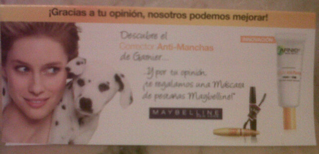 Un pequeño folleto que solo por rellenarlo y dar tu opinión te mandan de regalo una máscara de pestañas Maybelline.