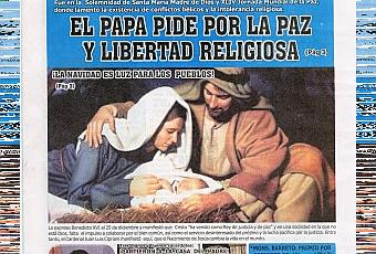 16 páginas y 4 de suplemento con noticias calentitas de la vida de la Iglesia del Perú y del mundo. Artículos de Monseñor J.I. Alemany “La Virgen María y la estrella de Belén”, Ana Gómez “El indio santo: Nicolás de Ayllón”, P.Carlos Rosell “Un ratito con Dios: La encarnación”, Alicia Stiglich “Las apariciones marianas”, P. Joaquín Díez Esteban “El trabajo de Jesús”, J.A. Benito “Bernardo Bitti: El pintor de Santa María”. El Suplemento se titula “Vida Consagrada” y se dedica a la semblanza de Sor María del Pilar, clarisa capuchina de 100 años, y los que ya están en la eternidad: P. Fernando Chang, el P. Vicente Ferrer Beniel y el P. Palací Garrido, misioneros franciscanos en Mazamari y Orellana. En las páginas centrales, un magnífico reportaje sobre el Nacimiento de las MM. Capuchinas y el retablo Nacimiento más grande del Perú.