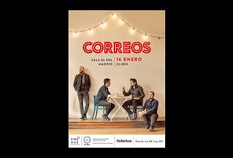 Correos vuelve a Madrid, será en la Sala El Sol en una noche muy especial.Correos sigue su camino, si bien, tras algunos cambios, marcados por la marcha de Mikel Antero (Guitarra), nos encontramos con un power trío que quiere seguir en 2016 las buenas vibraciones del 2015. Seres, ha dado a la banda esa fuerza.