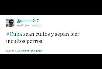 Los twitteros y blogueros cubanos queremos hacer pública nuestra protesta en virtud de la ofensa emitida vía Twitter hacia nosotros por parte del Sr. Moutaz Q., corresponsal acreditado en Cuba de la televisora árabe Aljazeera.