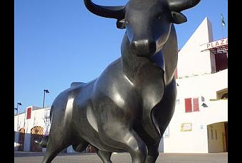 Escultura en la fachada de la Plaza de toros de Roquetas de Mar.
