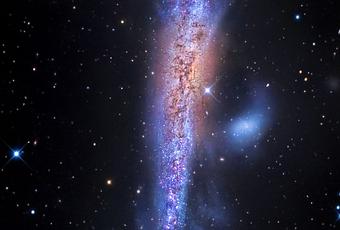 NGC 4631 es una galaxia espiral que se encuentra a tan sólo 25 millones de años luz de distancia en la constelación del norte Canes Venatici. Esta galaxia, que se ve aquí de canto, es similar en tamaño a la Vía Láctea. Para algunos, su forma de cuña deformada sugiere una arenque cósmico; para otros, su apodo popular, la galaxia de la Ballena. Justo a la derecha del núcleo polvoriento y amarillento está la galaxia compañera NGC 4627 así como unas galaxias enanas recién descubiertas dentro del halo de NGC 4631.