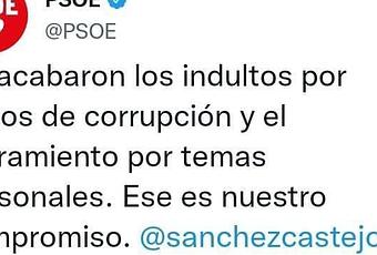Están presionando con fuerza al PP para que no pacte con VOX en Murcia, pero ellos pactan con cualquier fuerza, aunque se trate de enemigos abiertos de España y violadores natos de la Constitución. Son los socialistas españoles, gente de doble moral que se considera con derecho a gobernar y que niegan ese derecho a los demás. Gritan y acusan porque en las listas de VOX valencianas hay alguien que fue condenado hace dos décadas por violencia de género, pero han guardado un vergonzoso silencio cuando sus socios de BILDU, herederos del terrorismo, al que jamás condenaron, incluyeron a 40 condenados en sus listas, diez de ellos con delitos de sangre. Es el imperio de la doble moral, de la hipocresía, que trata a los ciudadanos como idiotas, como gente incapaz de recordar los errores y suciedades que está hundiendo nuestra nación. Están esgrimiendo de nuevo el fantasma de VOX para aterrar a los suyos y movilizarlos, a pesar de que esa táctica es cada día menos creíble porque VOX demuestra cada día ser un partido de orden, respetuoso con la Constitución, responsable y lleno de amor a España. Los socialistas de Sánchez, a pesar de la dura derrota sufrida en 28 de mayo, siguen construyendo su poder sobre la amenaza, el miedo, la mentira, el engaño y la manipulación. Se rasgan las vestiduras y ponen el grito en el cielo cuando el Partido Popular pacta con VOX, pero ellos pactan con lo peor de España, comunistas, amigos y herederos de ETA, independentistas y golpistas catalanes, racistas vascos y con todo tipo de totalitarios. Para ellos hay dos conceptos de la moral, la propia, que lo permite todo, y la de los adversarios, que no permite nada. Los socialistas mienten y engañan con un descaro desgarrador, sin importarles ya el ridículo y el ser calificados de estafadores corruptos. Si visitas la hemeroteca puedes encontrar allí más de un centenar de grandes mentiras y promesas falsas a los ciudadanos. La imagen que hoy ilustra este artículo, refleja la falsa promesa que hicieron de no indultar a corruptos y delincuentes. La realidad es que han indultado a corruptos, golpistas y a gente que ha intentado destrozar la nación y la paz, mientras se preparan para indultar también a Griñán, si ganan las elecciones del 23 de Julio. —-