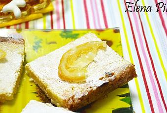 Cada cortadito lo decoré con una rodaja de limón confitado. En este caso, no os diré cómo hacerlas, porque son puro atrezzo. ¡Quedaron durísimas! Sobre todo, días después. Imposible hincarle el diente a un pedacito sin perder media dentadura en el intento. No es que no quiera compartir la receta con vosotros y guardarme para mí sola el secreto, es que realmente quedan duros. Os prometo que cuando dé con una receta con la que no pongamos en riesgo ninguno de nuestros dientes, la compartiré.