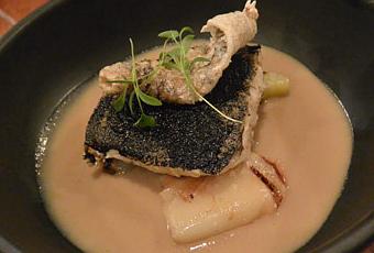 Mi cena comenzó apagando un poco la sed con un Mojito Hemingway, y siguió con la llegada a la mesa de un rico y calientito pan, y de las salsas, que iban desde la martajada hasta la de habanero tostado, pasando por la de siete chiles y la de cacahuate. Luego, una tostada de cueritos, crema y salsa de mamá, verdaderamente esa salsa tiene sabor a hogar. Seguimos con una tostada de pozole seco, tacos de marlín al pastor, taco de lengua, y escolar en crema de almeja. Una degustación que fue sin duda una buena muestra de la cocina de Cortez.