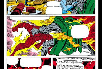 NO! Yo soy más SACRIFICABLE! Grita Antorcha. O sea, mi vida no vale tanto como la vtra porque soy joven y tonto y por tanto no puedo derrotar a Doom.Entonces Sue, simplemente por ser esposa de, y Reed, se salvan. Es mi HERMANO! Ya, pero es ntra vida cari. Pero ... JOHNNY? Reed podía haber recordado a su esposa que ella tiene el poder de crear campos invisibles de fuerza (acabo de caer!) que siempre logran lo que le conviene al guionista en ese momento, pero presenciar la muerte de un hermano no es un espectáculo que un marido conservador permite a su mujer. Es una gran escena, pero como siempre, Lee&Kirby, por estar más preocupados por la cantidad que por la calidad, no desarrollaron sus consecuencias. Todo esto debería haber llevado a los Storm a reflexionar. Cuál es el papel de Johnny, que ni siquiera tiene todavía la edad legal para beber en EEUU, en los 4F? Es un mensaje oculto de Lee sobre Nam? Realmente los 4F son un grupo? No son más bien 3 esclavos y un amo? Es Reed como el emperador de Japón y por ello los otros son gente a la que se le puede exigir convertirse en kamikaze? Hay igualdad en los 4F? En fin, esta aventura debió de llevar a la reformulación del primer supergrupo Marvel para dejar de ser una Hidra primigenia, una organización donde los miembros siempre deben amputarse para salvar la cabeza. Cosa, Antorcha y Sue protegen con su vida la vida de Reed, pero este que hace por ellos además de salir huyendo tras aceptar que un jovencito se sacrifique por él? Si Lee&Kirby hubieran sido de una época más cercana a la ntra y no estuviesen ya en crisis las cosas habrían cambiado mucho en el redondo nº 60 (5 años).