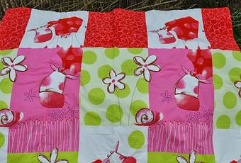 Y para la mamá, Araceli, un cojín-manta con colores muy vivos como a ella le gusta, festoneado a mano y acolchado a máquina.
