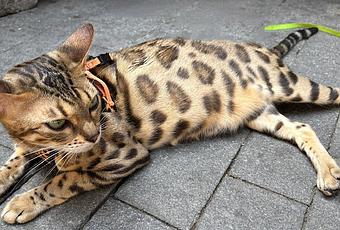 No dudé en acercarme para preguntar e informarme respecto de lo que estaba sucediendo: se trataba de un encuentro entre propietarios de "gatos bengalíes", una raza relativamente reciente que se había conseguido mediante cruces de gatos con el gato leopardo asiático y que destacan por su apariencia salvaje y su carácter amigable.