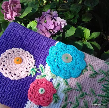 No debo olvidar que le coloqué botones de colores para simular los centros de las flores y otro para cerrar la funda!