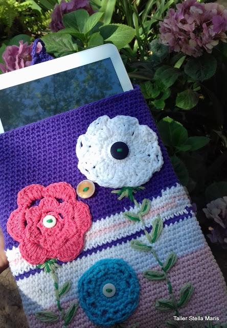 Se trata de una funda para mi Tablet, quise darle un toque muy Primavera-Verano, es por eso que me inspiré en las hortencias de mi jardín...