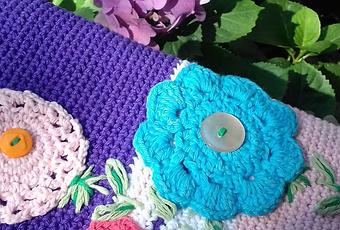 No debo olvidar que le coloqué botones de colores para simular los centros de las flores y otro para cerrar la funda!