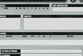 He encontrado esto en una pagina francesa/francófona, pero escrita en inglés, dedicada a juegos de GW llamada The Death Jungle que puede ser de interés para los jugadores de W40K que se introduzcan en la nueva edición y quieran hacerse listas de ejercito o una especie de tarjetas de unidad, como se hacía en 2ª edición. Se descarga la plantilla desde este link y a trabajar.