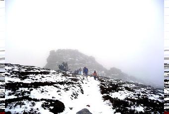 Para ello tuvimos que presentarnos a las 9:00 de la mañana en el hotelPasadoiro en el propio alto de Navacerrada, allí dimos cuenta de un correcto desayuno con el que preparar el cuerpo para una excursión de 5 horas, durante las cuales ascenderíamos al primero de los Siete Picos, bajaríamos hasta el Camino Smith atravesando el bosque por la ladera norte de la montaña (y cayéndonos varias veces, especialmente el que habla, que se dio un buen revolcón cuesta abajo) y después de un par de rodeos volveríamos, derrengados y alegres, tras 5 horas y 10 kilómetros de travesía, al punto de partida.