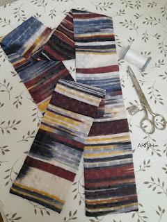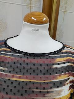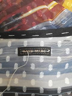 seguido ribetearemos el escote con el biés ó si os apetece también podéis cortar el biés de la misma tela que la túnica y como detalle importante os recomiendo marcar la espalda con una etiqueta o similar, ya que al ser "escote barco" os será más fácil encontrarla a la hora de vestiros