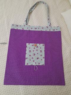 Bolsas, bolsas y más bolsas.......................... estoy en "modo bolsas"................... hace tiempo que empecé a concienciarme de llevar mi propia bolsa para la compra y me acostumbré enseguida y al mismo tiempo se me ocurrió meter en varios bolsos alguna de las bolsas plegables de tela que regalaba una marca de cosméticos con las compras y reconozco que me han venido muy bien cuando en alguna tienda me preguntan si quiero bolsa. Así que probé a hacer una plegable de tela de algodón y éste fué el resultado: