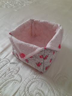 damos nuevamente la vuelta, doblamos los 4 picos, cosemos un botón en cada uno y a disfrutar de la cestita.