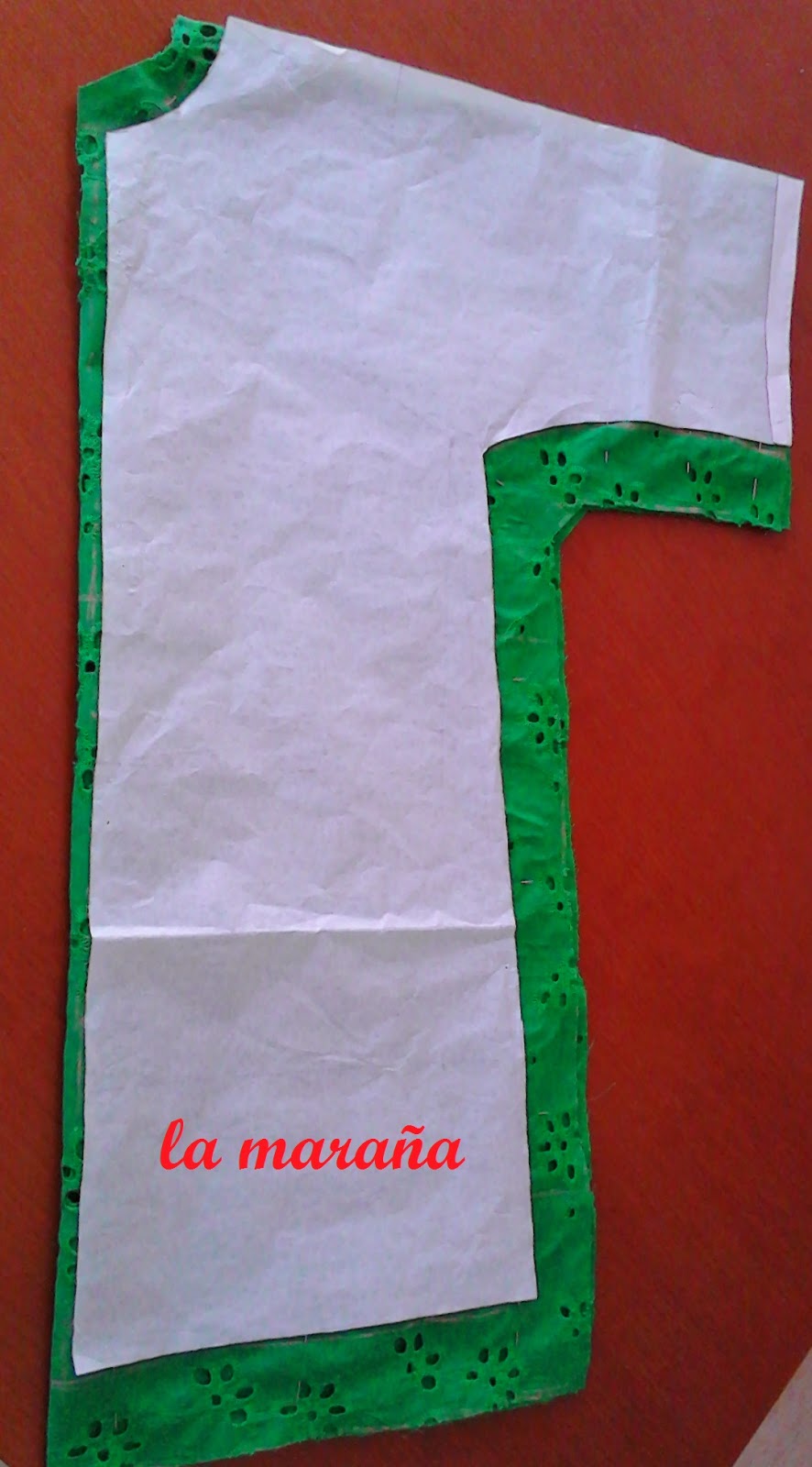No se aprecia mucho en la foto, pero ha quedado muy bien.9- Y por último vamos a poner el cordón. Cortamos al bies la tela y rodeamos todo el contorno. En la parte delantera del vestido, por donde vamos a sacar el cordón hacemos un ojal con la maquina. Introducimos el cordón con ayuda de una horquilla y lo sacamos por el ojal.Bueno ya esta hecho, espero no haberme saltado ningún paso y que me hayáis entendido, pero es la primera vez que lo hago , en el próximo post intentaré hacerlo mejor.