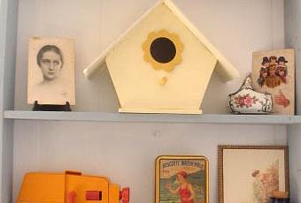 Aqui esta mi querida y super vintage, Lili Monster de goma, junto a un gatito de madera pintado a mano y una caja tambien vintage realizada en papel mache.