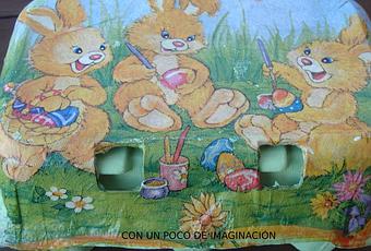 Las hueveras las pinte una verde y la otra en amarillo a juego con las servilletas.