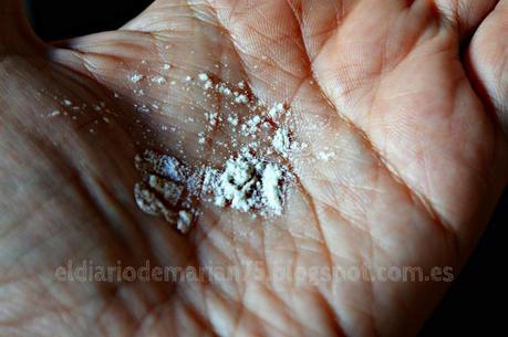 Aplicamos un poco en nuestra mano y le echamos unas gotitas de agua con los dedos hasta obtener una pasta. Lo aplicamos sobre el rostro húmedo, haciendo círculos e insistiendo en zonas más problemanticas. Vamos, lo que es una exfoliación (qué os voy a contar)