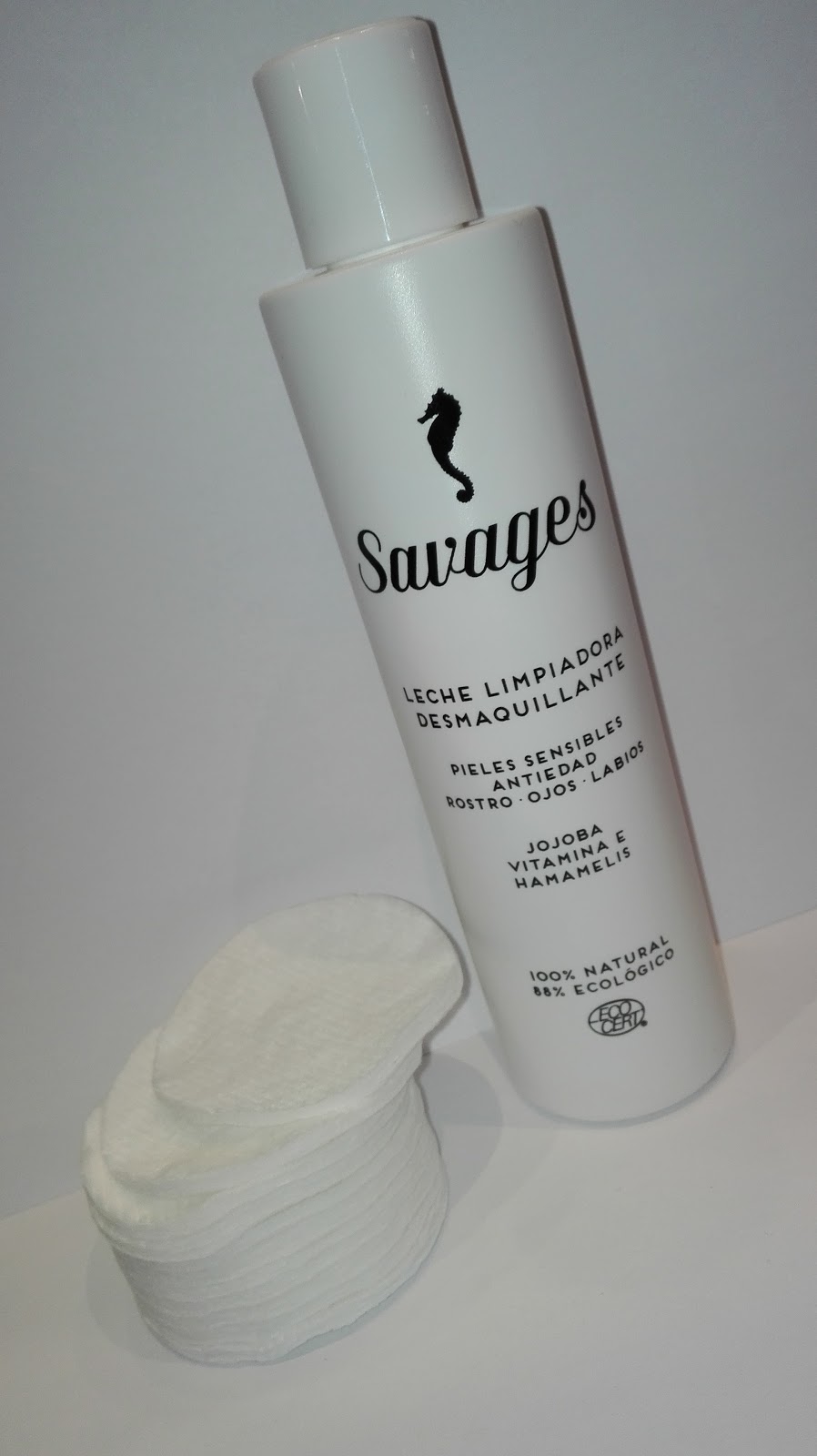 Leche limpiadora desmaquillante SavagesNo os voy a engañar, ya me hacía falta una limpiadora. Siempre busco una que sea capaz de desmaquillar en condiciones los ojos sin que me produzca irritación, pues los tengo muy delicados y no todos me suelen sentar bien. Esta indicada para todo tipo de pieles, incluídas las más sensibles, ya que contiene caléndula y aloe vera, lo cual proporciona un efecto calmante. Es perfecta para desmaquillar rostro, labios y ojos. Una ventaja que ofrece ésta limpiadora es la de combatir y prevenir manchas faciales, gracias a su contenido de extractos de margarita, ácido fítico y agua celular de mandarina. La clave para una limpieza profunda de la piel y una piel suave reside en ingredientes como el aceite de jojoba, harina de avena y extracto de hamamelis. Para mantener el buen equilibrio del manto de la piel, ésta leche incorpora oligoelementos esenciales, cola de caballo, vitamina E y Equinácea. ¿Puede ser más natural?Yo la aplico con ayuda de un disco de algodón, como os decía, soy muy exigente con el tema de desmaquillar los ojos (suelo utilizar maquillaje resistente al agua), y me he dado cuenta que aplicar esta leche humedeciendo previamente el disco con un poco de agua caliente el resultado es todavía más satisfactorio. El tamaño del envase es de 200 ml y su precio 16 euros.