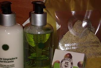 Y esto ya es lo que más me ha sorprendido. Una esponja con forma de aceituna, de un tacto muy rugoso, que además contiene verdaderos granitos triturados de huesos de aceituna. Me ha encantado!!Una perfecta exfoliación para eliminar celulas muertas e impurezas para así renovar nuestra piel y prepararla para tratamientos posteriores. Yo la estoy usando en la ducha con un poco de gel. Me está dando muy buen resultado, ya que pronto empezaré a aplicarme autobronceadores y es necesario tener la piel bien exfoliada.
