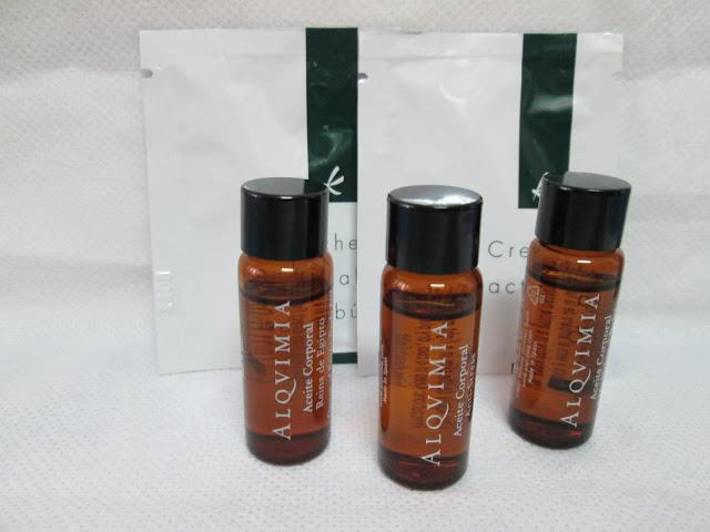 Además, con tu pedido te envían muestras. Yo he recibido varias de ellas, entre las que destaco principalmente varias muestras de aceites corporales de "Alqvimia", como: Aceite corporal Reina de Egipto, Aceite corporal anti-estrés y Aceite corporal para niños y bebés.