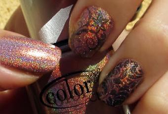 Me pasa con estos esmaltes lo que os he dicho en otras ocasiones: que me da "pena" decorarlos porque ya de por sí son tan bonitos... Éste es perfecto para cuando queramos lucir una manicura nude pero con los reflejitos holográficos, que la harían "discreta" y espectacular al mismo tiempo. Estampé sobre tres de las uñas unos diseños tipo floral con el esmalte Beyond que os enseñaba aquí la semana pasada.