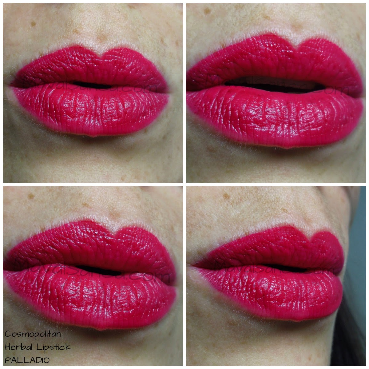 Aquí podéis ver el Herbal Lipstick Cosmopolitan de PALLADIO aplicado sobre mis labios.Lo he aplicado con pincel sin usar perfilador de labios ni prebase.Queda con acabado jugoso pero sin perder intensidad de color.El rojo es totalmente uniforme.Y se pierde gradualmente, sin parchearse.Dura en perfectas condiciones al menos cuatro horas tiñiendo ligeramente el labio al desaparecer.Y deja los labios hidratados.Su olor es frutal y muy agradable, como un bálsamo.Here you can see Cosmopolitan PALLADIO Herbal Lipstick applied on my lips. I've applied with a brush without using lip liner or primer. Has juicy finish without losing color intensity. Red is totally uniform. And is gradually lost, not patched. Lasts in perfect condition at least four hours to disappear staining on the lip slightly. And leave lips hydrated. Its scent is fruity and very nice, like a balm.