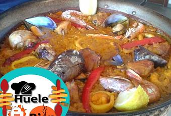 De segundo, tomamos una exquisita paella mixta para dos. ¡Con un aspecto impresionante!... El camarero amablemente posa unos segundos con ella, para que pueda tomar algunas fotos.