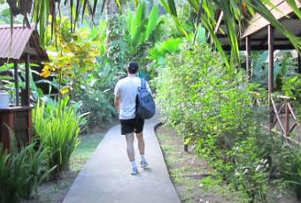Hotel Pachira Lodge en el Parque Nacional de Tortuguero. Caminando hacia nuestra habitación.