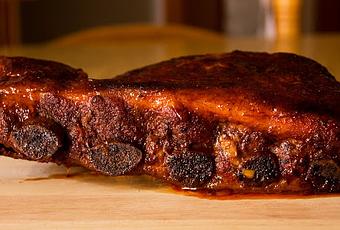 El primer paso esencial es elegir un buen costillar. En los supermercados venden tiras de costillar entero, que no están nada mal. Suelen tener un grosor de dos dedos aproximadamente. Yo fui a mi carnicero de toda la vida y compré un señor costillar de 1,3Kg, que era tres dedos de gordo, con betas de grasa entre la carne, que es la grasa que más nos interesa, ya que da jugosisdad, no como la que aparece a pegotes alrededor del costillar. Dependiendo del grosor de vuestro costillar luego tendréis que cocinarlo más tiempo o menos.